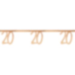 Dekorative Girlande aus Papier in glänzender Roségoldfolie mit der Zahl 20. Die Girlande ist eine hervorragende Dekoration für Ihre 20. Geburtstagsfeier und jede Zahl ist 18 x 23 cm groß und die Girlande selbst ist 250 cm lang.