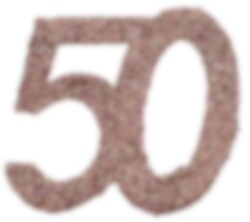 6 glitzerndes großes roségoldenes Konfetti zum Dekorieren auf der 50. Geburtstagsfeier. Das Konfetti ist in Form von der Zahl 50 und ist 6 x 6 cm groß. Sie sind aus Pappe hergestellt.