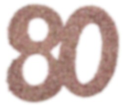 6 glitzerndes großes roségoldenes Konfetti zum Dekorieren auf der 80. Geburtstagsfeier. Das Konfetti ist in Form von der Zahl 80 und ist 6 x 6 cm groß. Sie sind aus Pappe hergestellt.