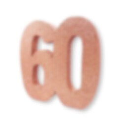 Sehr schöne und beeindruckende Tischdekoration, die in Roségold glitzert. Die Dekoration ist in Form von der Zahl 60 und wird ein Mittelpunkt auf Ihrem gedeckten Tisch zum 60. Geburtstag. Die Dekoration ist 19,5 x 20 cm groß.
