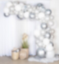 Erstellen Sie eine beeindruckende Ballongirlande mit unserem DIY Ballonbogen Kit in Silber und Chrome. Dieses komplette Kit enthält alles, was Sie benötigen, um eine fantastische Dekoration zusammenzustellen, perfekt für alle Arten von Veranstaltungen. Länge: 5 Meter