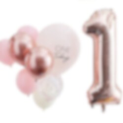 Wirklich schönes Ballon Bouquet in Rosa und Roségold mit einem 1-Jahres-Motto. Dekorieren Sie damit den Raum für die 1.Geburtstagsparty. Das Paket enthält