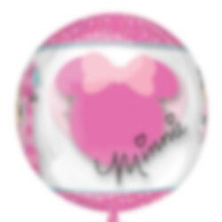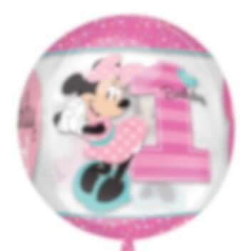 Schöner Ballon mit 4 verschiedenen Motiven von Minnie Maus. Eine passende Dekoration für eine 1. Geburtstagsparty. Der Ballon ist im aufgeblasenen Zustand etwa 38 x 40 cm groß.