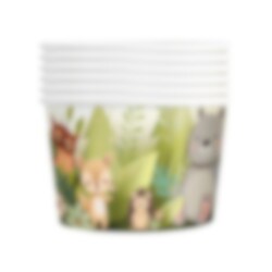 6 kleine Eisbecher in schönen Farben mit liebevollen Motiven von verschiedenen Waldtieren. Die Becher sind perfekt zum Servieren von Eis, Süßigkeiten, Snacks oder anderen Leckereien. Sie fassen 150 ml und haben eine Größe von 6 x 7 cm. Sie Bestehen aus Pappe.