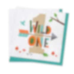 16 Servietten in schönen Farben mit Motiven des Textes „Wild One“ und der Zahl 1 im Hintergrund aus dem Thema Woodland Animals. Die Servietten hat 2-lagen und ist 33 x 33 cm entfaltet.