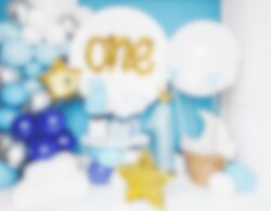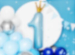 Super schöner Folienballon in Blau, der die Zahl 1 darstellt. Der Ballon hat auch eine goldene Krone auf der Spitze und ist eine wunderbare Dekoration für den 1. Geburtstag.