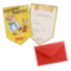 Laden Sie zu einem Abenteuer ein! Diese Einladungskarten mit passenden roten Briefumschlägen machen es besonders unterhaltsam, Freunde zu einer Asterix-Mottoparty einzuladen.