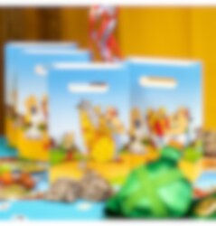 4 Geschenktüten mit wunderschönen Asterix-Motiven. Füllen Sie die Tüten mit Süßigkeiten und kleinen Überraschungen und verschenken Sie sie an die Gäste Ihrer Kinderparty.