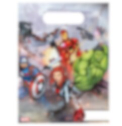 6 Geschenktüten mit einem unglaublich coolen Motiv der Avengers-Gang. Füllen Sie die Tüten mit Süßigkeiten und einer Überraschung und geben Sie sie dann Ihren Freunden während der Party.