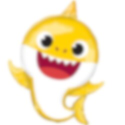 Folienballon mit dem gelben Hai aus dem beliebten Kinderlied Baby Shark. Eine lustige Dekoration für die Mottoparty mit Baby Shark Thema. Der Ballon ist etwa 53 x 66 cm groß und wird mit Luft oder Helium aufgeblasen.