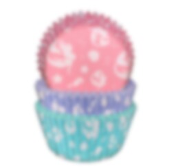75 Muffinförmchen in bunten Farben und mit schönen Meerjungfrauenmotiven. Damit lassen sich wunderschöne Muffins backen, die gut zur Party mit Meerjungfrauen-Motiv passen. Der Bodendurchmesser der Muffinförmchen beträgt ungefähr 5 cm.