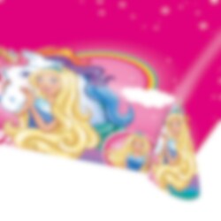 Schöne Tischdecke aus Kunststoff mit Barbie Dreamtopia-Motiven. Das Tischdecke ist ca. 180 x 120 cm groß.