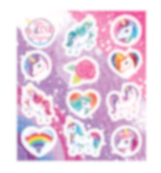 12 Sticker mit süßen Einhornmotiven. Cool als Überraschung in der Geschenktüte.