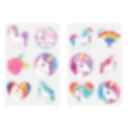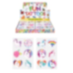 6 Tattoos auf einem bogen mit Motiven süßer Einhörner. Immer lustig in der Geschenktüte. Bitte beachten Sie, dass die Tattoos auf zwei verschiedenen Bögen sind und einzeln und unsortiert verkauft werden.