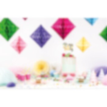 Diamantförmige Dekoration aus hellrosa Papier mit Wabenmuster, die sich leicht zusammenfalten lässt und mit doppelseitigem Klebeband zusammengehalten wird. Anschließend kann sie an der mitgelieferten Schnur aufgehängt werden. Die Dekoration ist in zwei Größen erhältlich, 20 oder 30 cm hoch. Der Preis bezieht sich auf ein Stück.