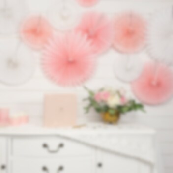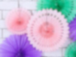 3 dekorative hellrosa Papierrosetten. Die dekorativen Monde oder Fächer, wie sie auch genannt werden, lassen sich einfach zusammenbauen und neben einer Wand aufhängen, um eine lustige Atmosphäre zu schaffen. Die Papierrosetten eignen sich für Partys, Taufen, Babypartys und andere festliche Anlässe. Jede Packung enthält 3 Papierrosetten mit einem Durchmesser von 40 cm, 32 cm und 23 cm. Besteht aus Papier.