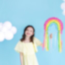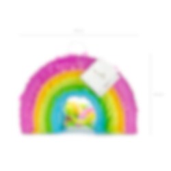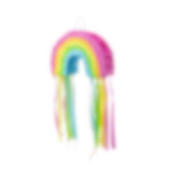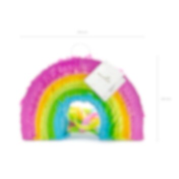 Coole Piñata in Form eines bunten Regenbogen. Ein lustiges Zubehör, als Spielzeug oder als Tischdekoration für die Party. Füllen Sie die Piñata mit Süßigkeiten und Spielzeug und lassen Sie die Kinder dann an den Fäden ziehen, um zu sehen, wer sie leert. Die Piñata ist etwa 30 x 20 x 10 cm groß und wird ohne Inhalt verkauft.