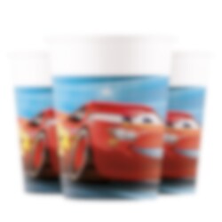 8 Pappbecher mit einem farbenfrohen Motiv von Lightning McQueen aus dem Disney-Film Cars. Ideal, um eine einheitliche und fröhliche Tischdekoration für eine Feier im Cars-Thema zu gestalten.