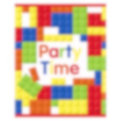 8 Kunststofftüten mit farbenfrohem Bausteinmotiv und dem Schriftzug "Party Time". Ideal zum Befüllen mit Süßigkeiten, kleinen Spielsachen oder anderen Überraschungen, die die Kinder nach der Party mit nach Hause nehmen können. Jede Tüte hat einen Tragegriff und passt perfekt zu einem Geburtstag mit Baustein-Motto.