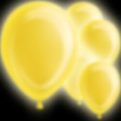 5 gelbe LED-Luftballons zur Verbesserung der Partyatmosphäre auf der Kinderparty. Die Ballons verfügen über ein kleines LED-Licht, das einfach aktiviert werden kann, bevor der Ballon aufgeblasen wird. Die Ballons machen einen effektvollen Eindruck und leuchten bis zu 24 Stunden. Die Ballons haben im aufgeblasenen Zustand einen Durchmesser von etwa 30 cm.
