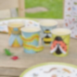 8 farbenfrohe Becher, die deine Bug Party aufwerten! Perfekt für kleine Entdecker mit verschiedenen Insektenmotiven. Diese Pappbecher sind ideal, um eine lustige und spielerische Atmosphäre auf der Kinderparty zu kreieren. Sie sind etwa 11 cm hoch und 23 cm breit.