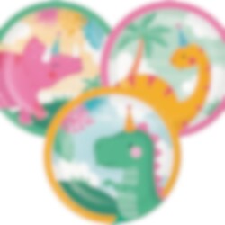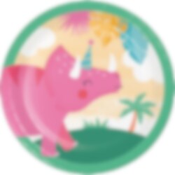 8 Kuchenteller aus Pappe mit 3 verschiedenen Dinosauriermotiven. Diese Kuchenteller sind perfekt, um Ihre Gäste einzuladen und Leckereien auf eine festliche und lustige Weise zu servieren. Die Kuchenteller haben einen Durchmesser von 18 cm.