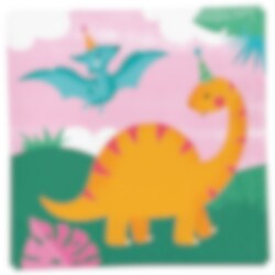 16 Servietten mit niedlichen Dinosauriermotiven. Die Servietten haben 2 Lagen und sind aufgefaltet 33 x 33 cm groß.