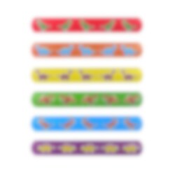Schnapparmband mit Motiven von coolen Dinosauriern in verschiedenen Farben. Ein lustiges Spielzeug, das Sie in die Geschenktüte stecken und dann den Gästen auf der Kinderparty schenken können. Das Armband ist 22 cm lang und 3 cm breit.