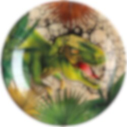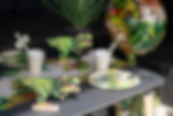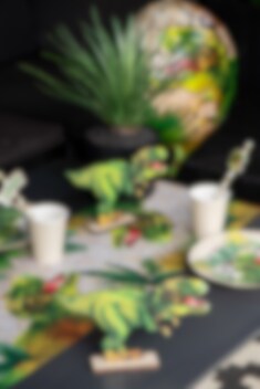 Stilvolle Pappteller im 10er Pack in bunten Farben und mit Motiven eines wilden T-Rex und großen grünen Blättern. Verwenden Sie diese für eine stilvolle Tischdekoration, wenn es Zeit für eine Dinosaurierparty ist. Und vergessen Sie nicht, sich unsere anderen Dinosaurier-Accessoires anzusehen, die perfekt dazu passen!