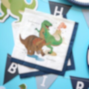 20 stylische servietten mit weißem hintergrund, blauen rändern und coolem Dinosauriermotiv. Die Servietten hat 2-lagen und ist 33 x 33 cm entfaltet.