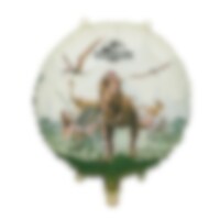 Als zusätzliches spannendes Detail hängen drei fliegende Dinosaurier, Pteranodons, unter der Girlande und tragen zur dynamischen Dekoration bei. Sie ist aus Papier gefertigt und misst 45 x 165 cm.