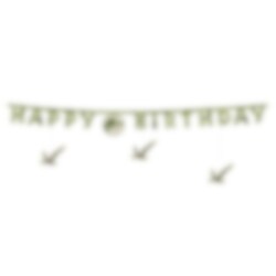 Die Girlande ist mit Buchstaben geschmückt, die den Text "HAPPY BIRTHDAY" in einem markanten Grünton mit texturiertem Muster bilden. Zwischen den Wörtern hängt das ikonische Jurassic World-Logo mit der Silhouette eines T-Rex.