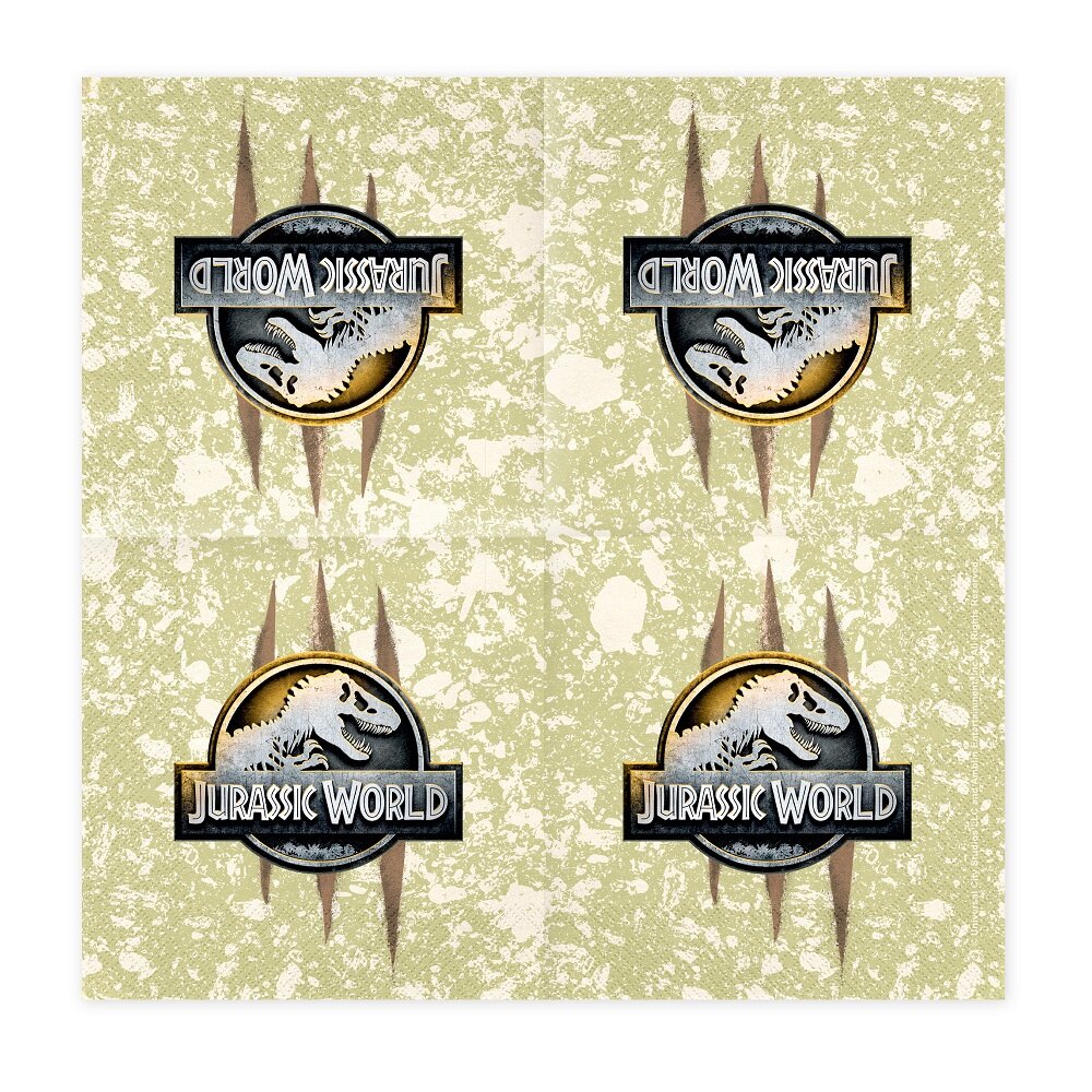 Tauchen Sie ein in eine Welt voller Dinosaurier und Abenteuer mit diesen beeindruckenden Servietten von Jurassic World. Die Servietten sind mit dem ikonischen T-Rex-Motiv sowie wilden Kratzspuren auf einem erdigen Hintergrund verziert, was die Atmosphäre für den Geburtstag perfekt einstimmt.
