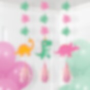 Dinosaur Roar Pink - Girlande Happy Birthday 137 cm