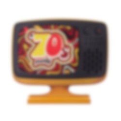Wirklich coole Dekoration aus Holz eines Retro-Stil-Fernsehers, der das zeitgenössische Design zeigt. Die Dekoration wird ein Farbtupfer auf dem Tisch sein und Charme zu Ihrer thematischen Tischdecke hinzufügen. Die Dekoration ist 22 x 18 cm groß.
