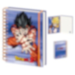 Das Notizbuch im A5-Format zeigt Goku im Kampfmodus auf dem Cover und ein Super-Saiyajin-Design im Inneren. Die Spiralbindung sorgt für einfaches Umblättern und die linierten Seiten sind perfekt für Schule oder Freizeit.