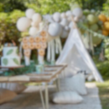 5 coole Luftballons gefüllt mit Palmblättern aus dünnem Papier. Eine tolle Dekoration für die Dschungelparty. Die Ballons haben im aufgeblasenen Zustand einen Durchmesser von etwa 30 cm.