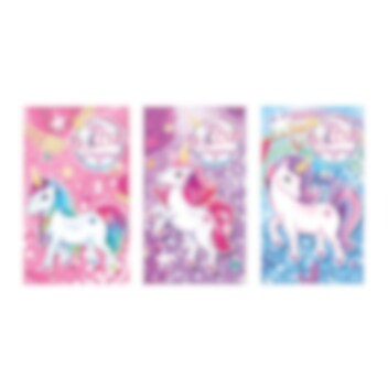 Niedliches kleines Malbuch mit einem süßen Einhornmotiv auf der Vorderseite. Es gibt drei verschiedene Designs, die unsortiert geliefert werden. Ideal für Mitgebseltüten oder als kleine Überraschung für Kinder auf der Party. Jedes Malbuch ist ca. 9 × 5,5 cm groß.