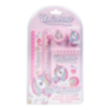 Dieses süße Schulset in Rosa enthält alles, was man braucht, um die Hausaufgaben ein bisschen spaßiger zu gestalten. Mit einem Bleistift, einem Lineal, einem Radiergummi, einem Anspitzer und einem kleinen Notizbuch ist es perfekt für die Schule, kreative Bastelstunden oder als liebevolles Geschenk für jeden Einhorn-Fan.
