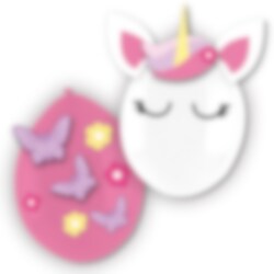 Cooles Ballonset bestehend aus 3 Latexballons in den Farben Weiß und Rosa mit dazugehörigen Motiven aus Pappe, mit denen Sie die Ballons so dekorieren können, dass sie ein Einhorn und Schmetterlinge in 3D imitieren. Lässt sich gut in dem Raum aufhängen, in dem die Party stattfinden wird.