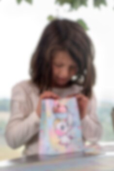 10 luxuriöse Geschenktüten aus etwas dickerem Papier mit Motiven einer Elfe und eines Einhorns. Die Tüten sind 18 x 13 cm groß und können mit Süßigkeiten und kleinen Spielzeugen gefüllt werden.