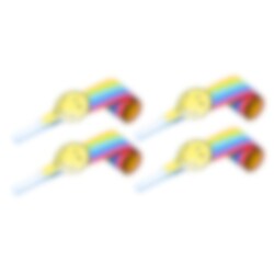 8 bunte Partytröten mit Smiley-Motiven. Lustige zum Verteilen auf den Tellern oder in den Geschenktüten, wenn eine Party mit Smiley-Motto ansteht.