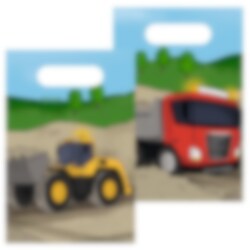 8 Geschenktüten aus Papier mit Motiven von verschiedenen Baumaschinen. Ein riesen Spaß zum Verschenken an Freunde, die zur Kinderparty kommen. Die Geschenktüten haben eine Größe von 23 x 16 cm.