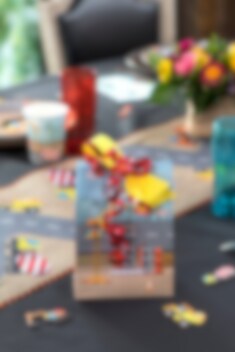 10 luxuriöse Geschenktüten aus etwas dickerem Papier mit einem Baustellenmotiv. Die Tüten sind 18 x 13 cm groß und können mit Süßigkeiten und kleinen Spielzeugen gefüllt werden.