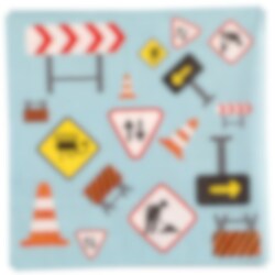 20 blaue Servietten mit lustigen Motiven von verschiedenen Verkehrsschildern. Sehr dekorativ für eine Fahrzeug Kinderparty. Die Servietten haben 3 Lagen und sind aufgefaltet etwa 33 x 33 cm groß.