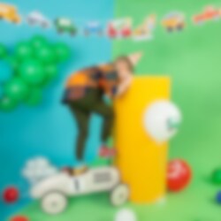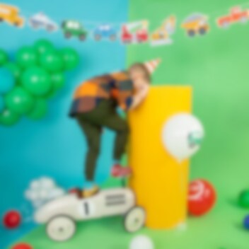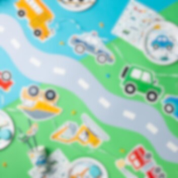Dekorative Girlande aus Pappe mit farbenfrohen Fahrzeugmotiven Wunderbar zum Aufhängen für eine Kinderparty mit Fahrzeug-Motto.
