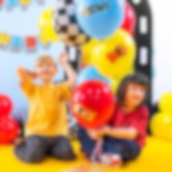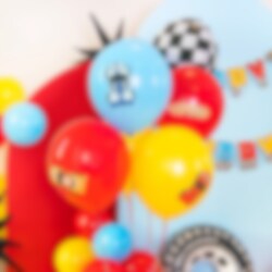 Bringen Sie volle Fahrt in Ihre Party mit diesen aufregenden Racing Car-Ballons! Das Set enthält 6 Latexballons in Rot, Gelb und Blau mit coolen Rennwagen und Texten wie START, GO und SPEED, sowie einen schicken schwarz-weißen karierten Folienballon, der die Party ins Ziel bringt.
