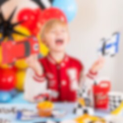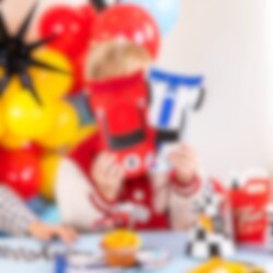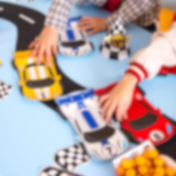 6 Teller in Form von Rennautos in Gelb, Weiß und Rot mit je 2 Stück in jedem Design. Perfekt, wenn Sie eine einheitliche und rasante Tischdekoration für die Geburtstagsfeier mit Racing Car-Thema haben möchten.