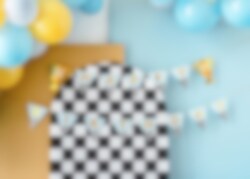 6 Becher im rasanten Rennwagenthema. Die Becher haben Motive der klassischen Zielflagge bei Wettbewerben und passen sehr gut zusammen mit anderem Zubehör für eine Kinderparty mit Autothema. Die Becher sind 9 cm hoch und fassen 220 ml.