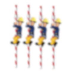 8 rot-weiß gestreifte Papierstrohhalme mit Feuerwehrmann Sam Motiven. Die Strohhalme sind 19 cm lang.